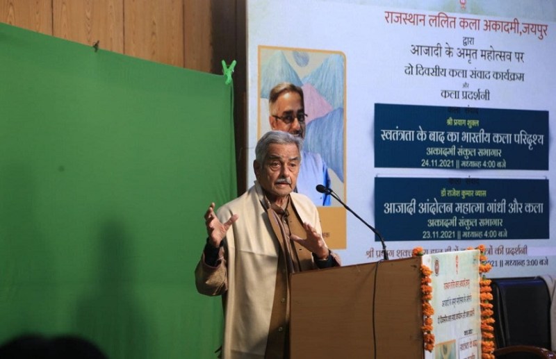 जयपुर. 'मेरा जन्म कोलकाता में हुआ और लगभग 14 साल की आयु के बाद कलाओं के प्रति आकर्षण बढऩे लग गया और तभी से कला लेखन की तरफ चला गया। इसके बाद यह सिलसिला आज तक जारी है। इस दौरान देश-दुनिया में हर तरह के कलाकारों की कलाकृतियों को देखने पहुंचता और वहां के कला क्षेत्र को समझने का प्रयास करता रहा। इसका गहरा प्रभाव पड़ा और वैश्विक स्तर पर कलाओं की समझ बढ़ी।' यह कहना है, जाने-माने कला समीक्षक और चित्रकार प्रयाग शुक्ल का। वे राजस्थान ललित कला अकादमी की ओर से झालाना स्थित अकादमी संकुल ऑडिटोरियम में कला संवाद कार्यक्रम के तहत आयोजित व्याख्यानमाला में संबोधित कर रहे थे।