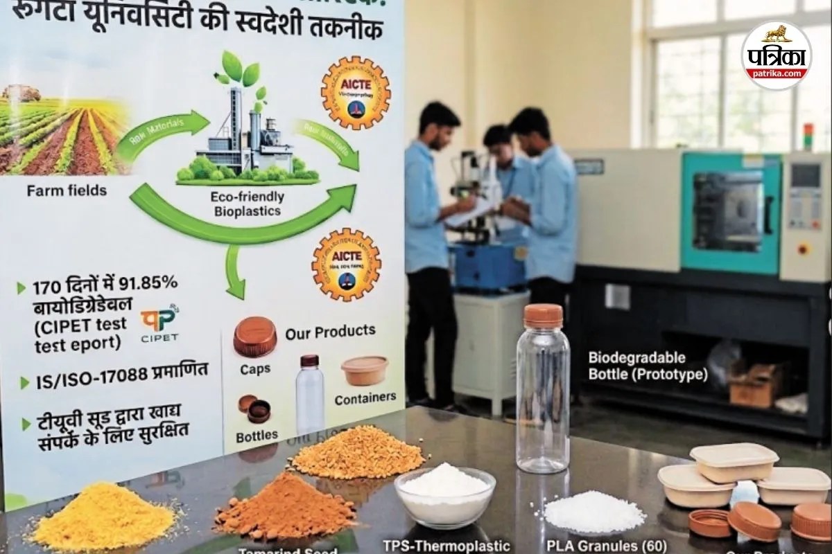 Biodegradable Packaging: प्लास्टिक प्रदूषण की समस्या के बीच एक बड़ी राहत भरी खबर सामने आई है। भिलाई स्थित रूंगटा यूनिवर्सिटी के वैज्ञानिकों ने खेतों के जैविक कचरे से ऐसा बायोकॉम्पोजिट विकसित किया है, जो प्लास्टिक का सस्ता, मजबूत और पर्यावरण के अनुकूल विकल्प बन सकता है।