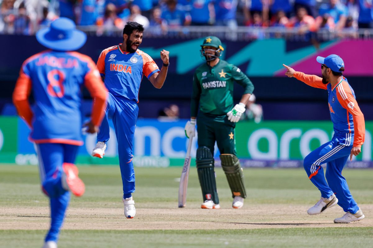 पाकिस्तान के खिलाफ विकेट लेने के बाद जश्न मनाते भारतीय तेज गेंदबाज जसप्रीत बुमराह। (फोटो सोर्स: एक्स@/BCCI)