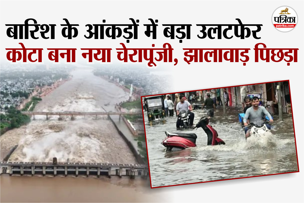 Rajasthan Monsoon Report: राजस्थान में बारिश के पैटर्न में बड़ा बदलाव देखने को मिल रहा है। जो झालावाड़ कभी प्रदेश का 'चेरापूंजी' कहलाता था, वह अब लगातार पिछड़ रहा है। इस साल कोटा और बांसवाड़ा जैसे जिले बारिश के मामले में आगे निकल चुके हैं। जल संसाधन विभाग के आंकड़ों के अनुसार 1 जून से 5 अगस्त 2025 तक झालावाड़ जिले में 910.14 मिमी बारिश दर्ज की गई है, जबकि पिछले साल इसी अवधि में यहां 1143 मिमी बारिश हो चुकी थी। इस बार जिले की बारिश सामान्य से करीब 20% कम रही है।