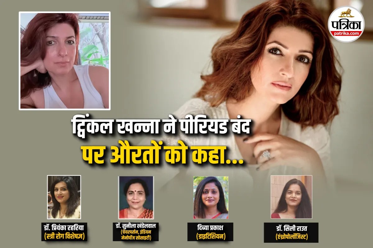 Menopause Kya Hai : औरतों का जीवन हर उम्र में नई चुनौती लेकर आता है। जिस तरह से पीरियड का आना दर्दनाक होता है, उसी तरह पीरियड का बंद होना भी है। एक्ट्रेस ट्विंकल खन्ना ने इसको लेकर अपना अनुभव शेयर किया है। एक्ट्रेस ने मेनोपॉज (Menopause) को लेकर खुलकर बात की। पत्रिका के साथ बातचीत में डॉ. प्रियंका रहरिया (स्त्री रोग विशेषज्ञ), डॉ. सुनीला खंडेलवाल (चेयरपर्सन- इंटरनेशनल, इंडियन मेनोपॉज सोसाइटी), दिब्या प्रकाश (डाइटिशियन) और डॉ. सिली राउत (एंथ्रोपोलॉजिस्ट) से मेनोपॉज क्या है, लक्षण-बचाव आदि के बारे में बताया है।