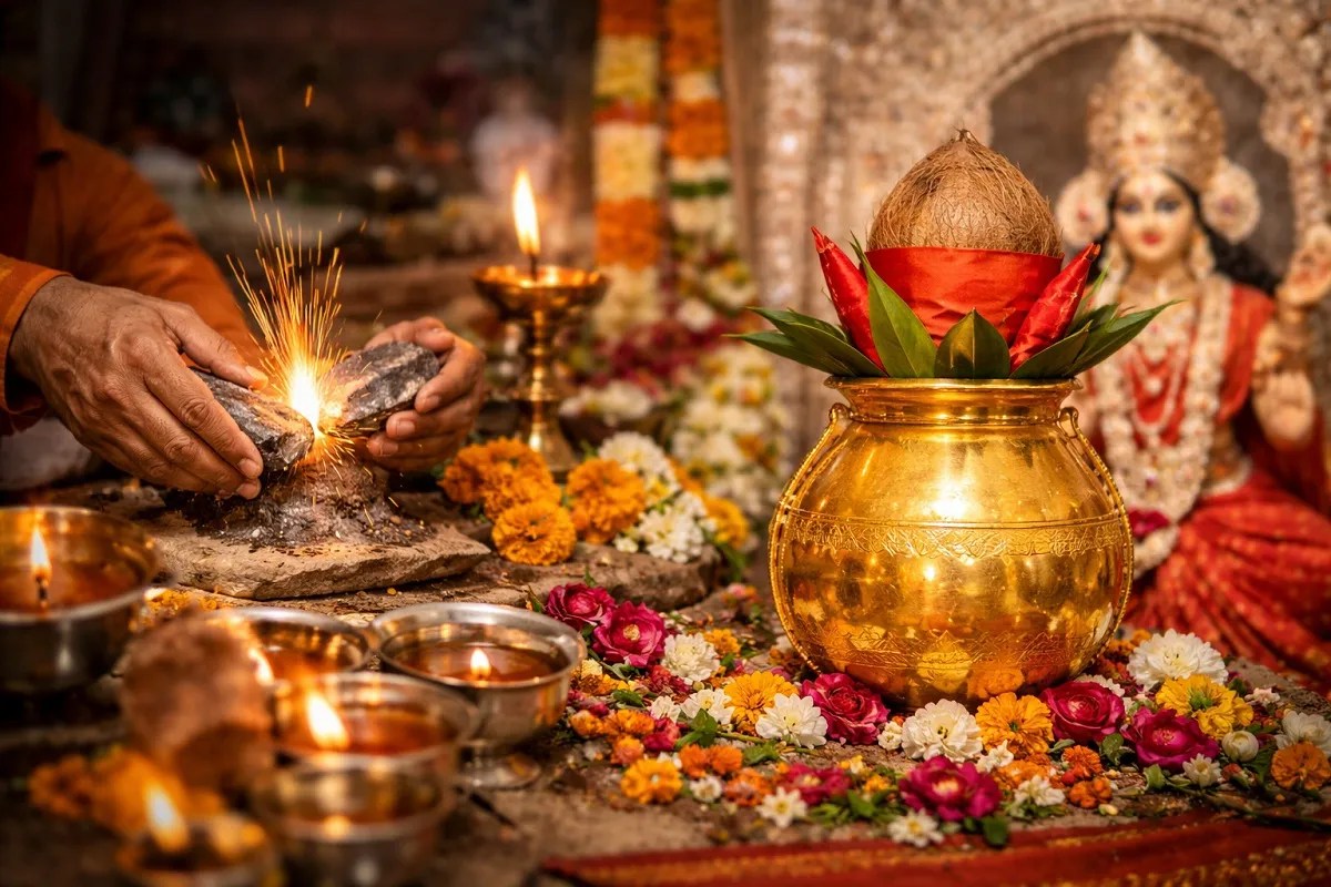 चैत्र नवरात्रि पर चकमक पत्थर की चिंगारी से जलेगी ज्योत (Photo AI)
