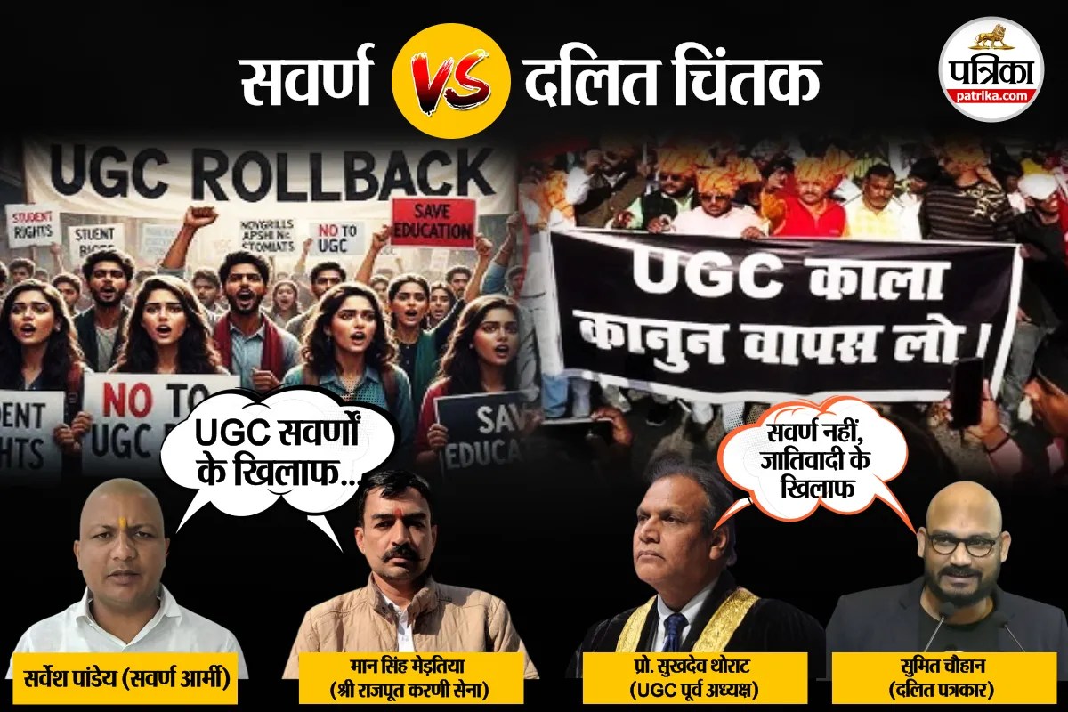 UGC Bill 2026 Controversy : यूजीसी के नए बिल 2026 को लेकर खूब हो-हल्ला मचा है। दिल्ली से लेकर राजस्थान, उत्तर प्रदेश, बिहार तक में सवर्ण संगठन इसे काला कानून बताकर सड़कों पर उतरे हैं। वहीं, दलित, आदिवासी, ओबीसी समुदाय यूजीसी के नए रेगुलेशन को जातिवादियों के खिलाफ मास्टरस्ट्रोक बता रहे हैं। सोशल मीडिया से लेकर सड़क पर इसको लेकर खूब बातें हो रही हैं। सर्वेश पांडेय, सवर्ण आर्मी प्रमुख ने तो बिल के खिलाफ खून से खत लिखकर विरोध किया है। वहीं, श्री राजपूत करणी सेना जोधपुर बंद का ऐलान कर चुकी है। संभावना है कि इस मुद्दे को लेकर करणी सेना भारत बंद की घोषणा भी जल्द कर दे।