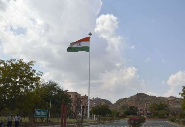 अजमेर में मौसम बुधवार को भी बदला-बदला नजर आया। सुबह छिटपुट फुहारों के बाद दिनभर बादलों के झुंड मंडराते रहे। बादलों की मौजूदगी के बीच बहती सर्द बयार के साथ मदस विवि में लहराता 100 फीट ऊंचाई पर राष्ट्रीय ध्वज तिरंगा।