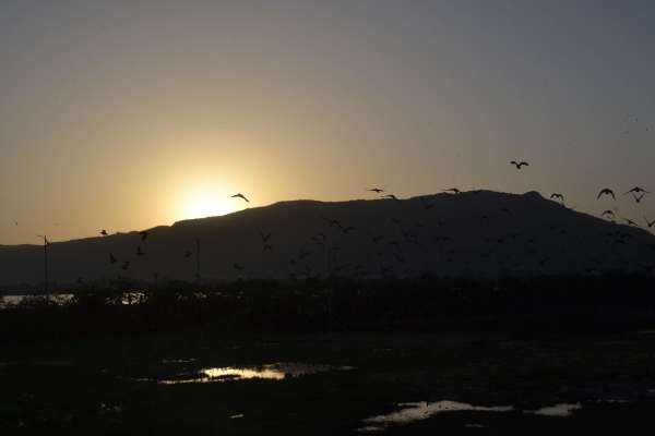 सुबह का सूर्य उदित होने पर समस्त प्राणियों को ऊर्जा प्रदान कर कर्मशील होने का संदेश देता है। जहां मनुष्य भोर ढलते ही अपनी दिनचर्या के अनुसार दिनभर अपना पेट पालने के लिए मेहनत मशक्कत करते हैं वहीं पंछी भी दूर-दूर तक उड़ान भरके अपना चुग्गा-पानी तलाशते हैं। दिनभर की थकन के बाद शाम ढलने के साथ ही पंछी भी अपने घरौंदों को लौट आते हैं। अजमेर में सूर्यास्त के समय अपने आशियानों की ओर परवाज भरता पंछियों का समूह।