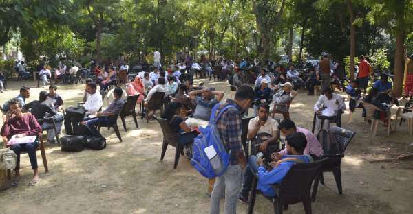 राजस्थान लोकसेवा आयोग परिसर में जारी वरिष्ठ अध्यापक प्रतियोगी परीक्षा की काउंसलिंग में आने वाले अभ्यर्थियों के सुविधार्थ लगाया टैंट और कुर्सियों की व्यवस्था की