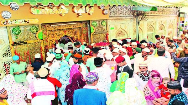 अजमेर. ख्वाजा मोइनुद्दीन हसन चिश्ती की दरगाह में सोमवार को ईदुलजुहा के मौके पर खुले जन्नती दरवाजे से गुजरते अकीदतमंद।