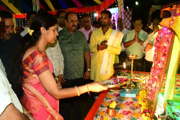 राजस्थान पत्रिका और विमल इलायची के महारास डांडिया में दीप प्रज्ज्वलित कर कार्यक्रम का शुभारंभ करते अतिथि।