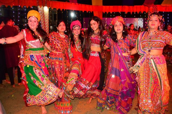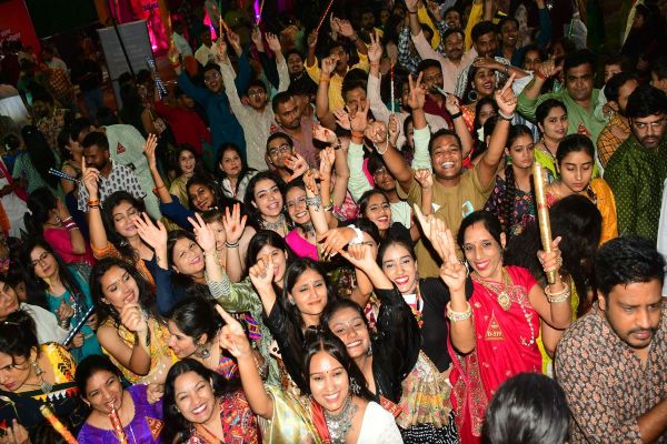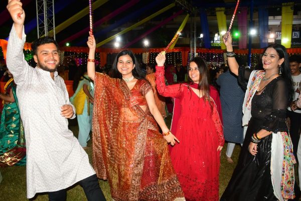महारास डांडिया में डांडिया खेलते युवक-युवतियां।