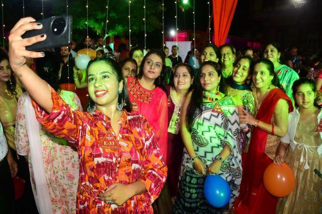 महारास डांडिया में सेल्फी लेती युवतियां।
