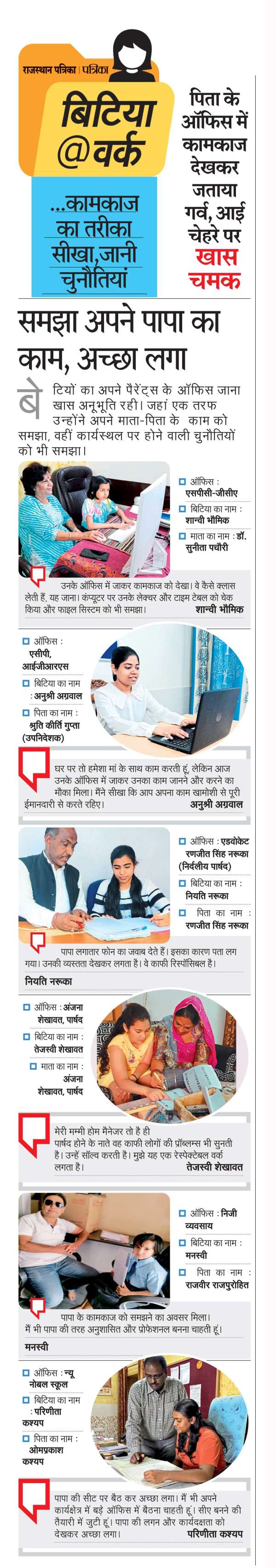 अजमेर. बेटियों ने पापा व मम्मी के दफ्तर में जाकर सीखा काम।