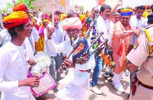अजमेर. सभा में वाद्ययंत्र बजाते हुए पहुंचे ग्रामीण