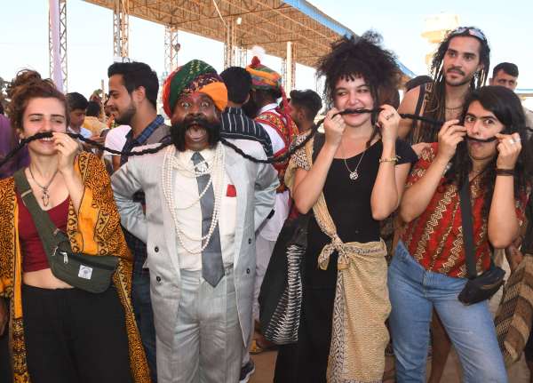 पुष्कर के मेला मैदान में मूंछ प्रतियोगिता के दौरान उपस्थित देशी-विदेशी पर्यटक।