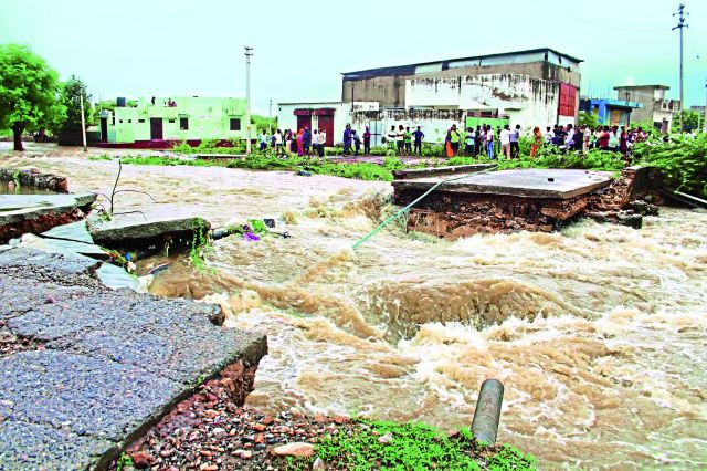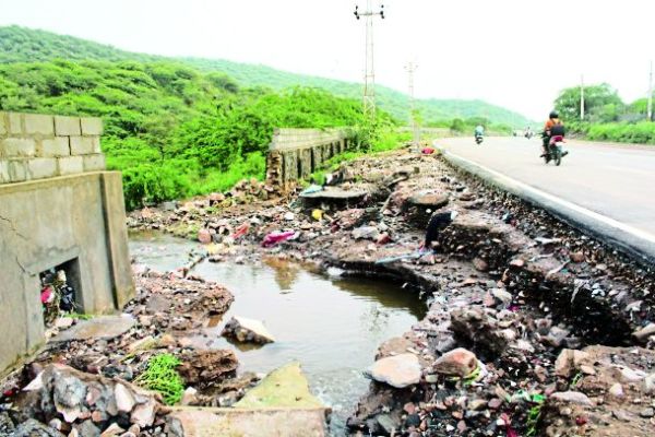 हाथीखेड़ा तालाब की पुलिया टूटने से बहता बरसाती पानी