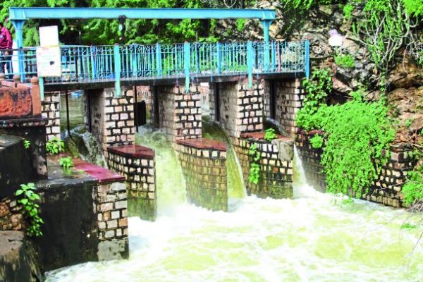आनासागर झील में अधिक पानी की आवक के बाद एस्कैप चैनल से की जा रही निकासी