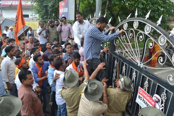 कलेक्ट्रेट पर प्रदर्शन करते अखिल भारतीय विद्यार्थी परिषद के छात्र।