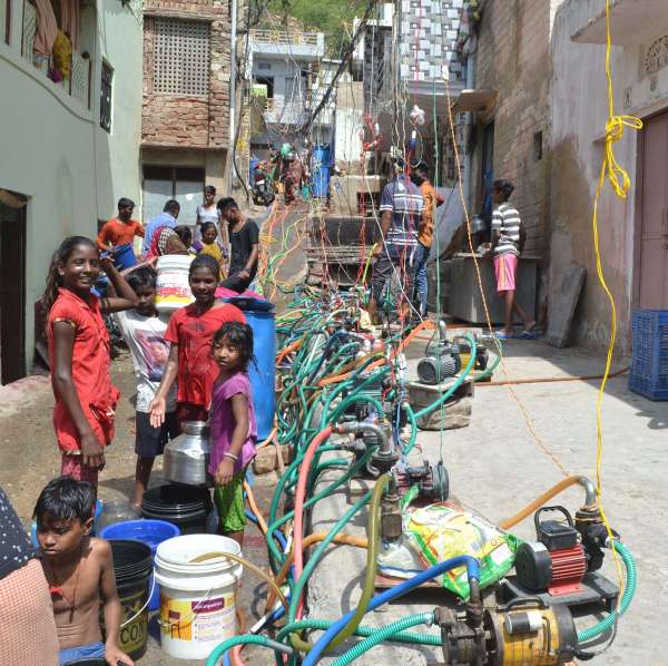 जलापूर्ति के दौरान लगा पानी भरने के लिए लगा मेला।