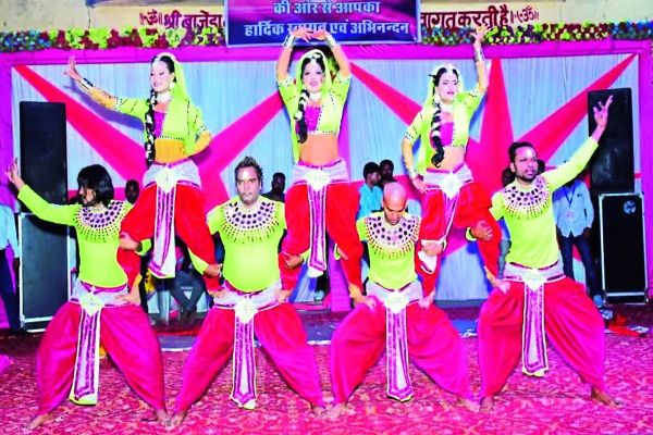 किशनगढ़ के अरांई रोड स्थित बाजेड़ा बालाजी मेले के दौरान सांस्कृतिक कार्यक्रम में प्रस्तुति देते कलाकार।