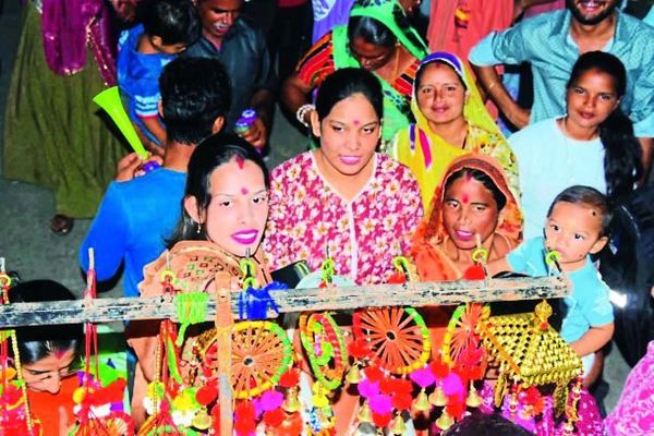 किशनगढ़ में प्राचीन बालाजी मेले के दौरान नाचते गाते पहुंची भक्तों की टोलियां।