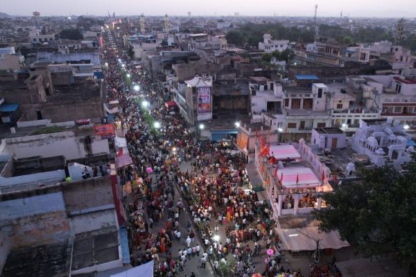 किशनगढ़ में प्राचीन बालाजी मेले के दौरान सोमवार को उमड़े श्रद्धालु। ड्रोन कैमरे से लिया गया दृश्य।