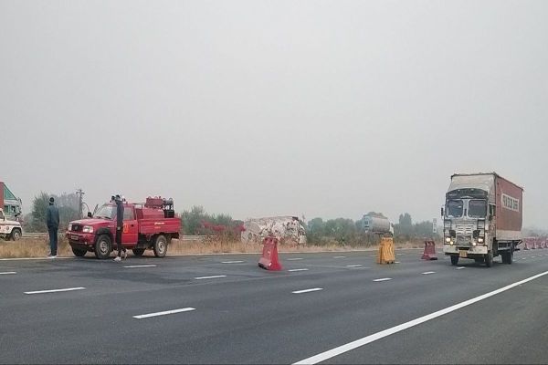 रैणी. वलनशील पदार्थ से भरा लीकेज टैंकर दिल्ली-मुंबई एक्सप्रेस हाईवे पर 28 घंटे तक खड़ा रहा।