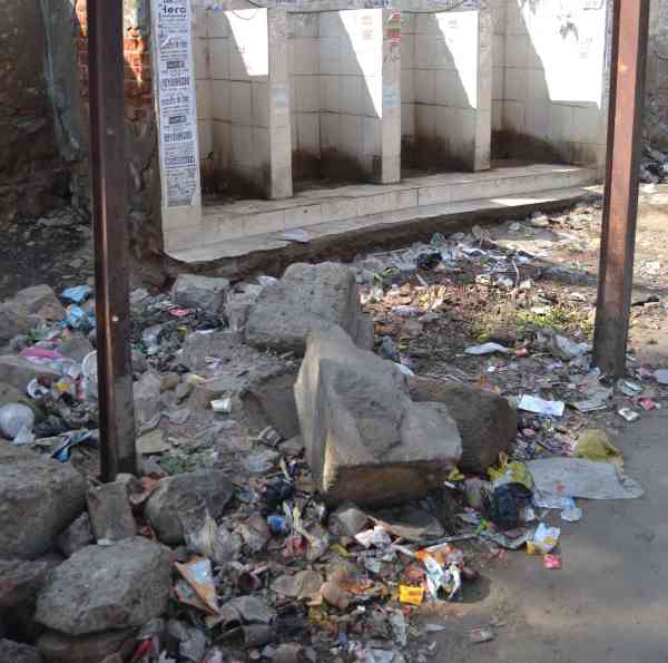 बस स्टैण्ड पर जगह-जगह फैला कचरे के ढ़ेर।