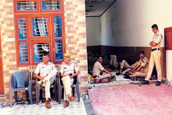 मातौर में फाइनेंस एजेन्टों के घर पर सुरक्षा के लिए तैनात पुलिस जाप्ता