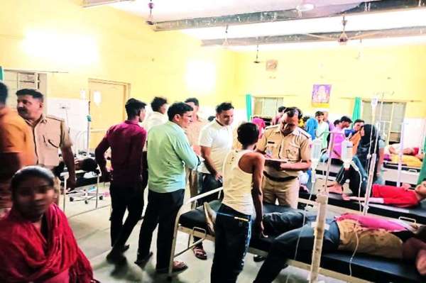 दो पक्षों में झगड़े के बाद घायल को संभालती पुलिस। अस्पताल में उपचार को लाए घायल।