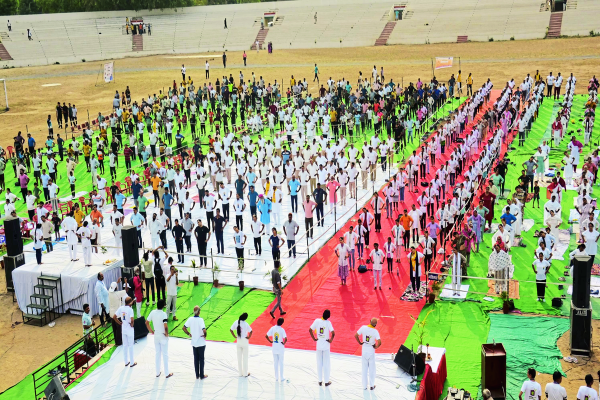 खैरथल . जिले में शुक्रवार को जिला स्तरीय 10वां अंतरराष्ट्रीय योग दिवस कार्यक्रम हुआ। इसमें जनप्रतिनिधी, अधिकारी-कर्मचारी, महिला, युवा तथा बुजुर्गों ने बढ़-चढक़र हिस्सा लिया। इसमें सामूहिक योगाभ्यास कर आरोग्यता और वसुधैव कुटुम्बकम का संदेश दिया।