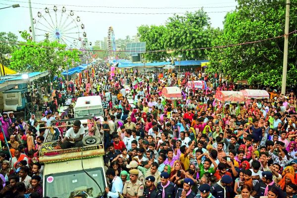 भगवान जगन्नाथ जानकी मैया को ब्याहकर गाजेबाजे के साथ रथ में सवार होकर वापस सुभाष चौक स्थित मंदिर पहुंचे।