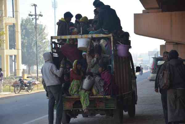 अलवर में एक लोडिंग टैंपो में क्षमता से कही अधिक सवारियां बैठ कर जाती हुई।