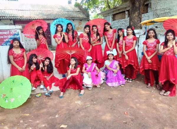आकर्षक परिधान में भाजपा के राष्ट्रीय अध्यक्ष व सीएम का इंतजार करतीं युवतियां