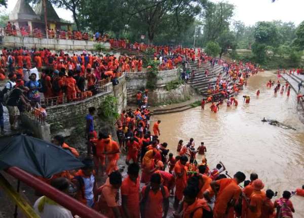 दूर-दूर से काफी संख्या में अलसुबह ही महिला-पुरुष कांवरिये पहुंच गए थे शंकरघाट।
