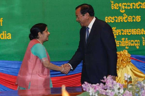 कंबोडिया में विदेश मंत्री सुषमा स्वराज ने अपने समकक्ष प्राक सोकोन से मुलाकात की।