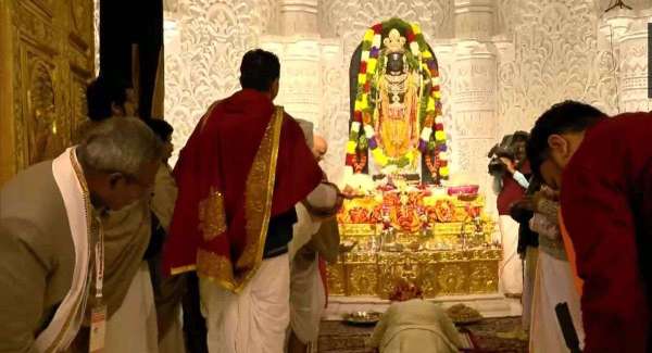 16 जनवरी को शुरू हुआ प्राण प्रतिष्ठा का आयोजन 84 सेकेंडों के शुभ मुहूर्त में हुई पूजा के साथ समाप्त हुआ। कुर्ता और धोती पहने और माथे पर तिलक लगाए पीएम नरेंद्र मोदी ने पूरी विधि-विधान से रामलला की प्राण प्रतिष्ठा की।