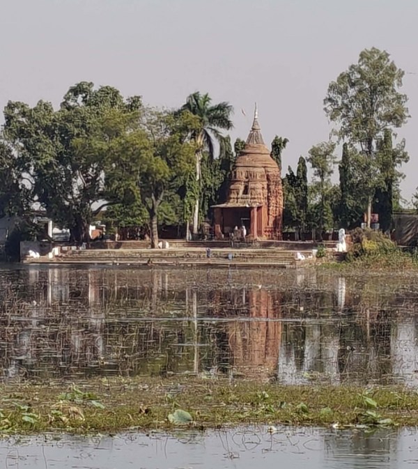 मंदिर की संरचना लाल ईंटों से की गई है और यह पश्चिमाभिमुखी है। इसके द्वार पर नदी देवियां गंगा और यमुना त्रिभंग मुद्रा में अंकित हैं, जबकि सिरदल पर त्रिदेवों और शिव विवाह का उत्कृष्ट शिल्पकला का प्रतीक है।