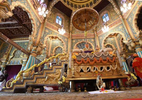 मैसूरु के प्रसिद्ध दशहरा महोत्सव की एक बड़ी खासियत है महल में लगने वाला 'राजा' का दरबार। मैसूरु के पूर्व शाही परिवार के उत्तराधिकारी यदुवीर कृष्णदत्ता चामराजा वाडियार इस परंपरा का निर्वहन करते हैं। सोने के सिंहासन पर आरूढ़ होते हैं और उनके दरबारी भी शान-ओ-शौकत के साथ पधारते हैं।तस्वीरों में देखिए....