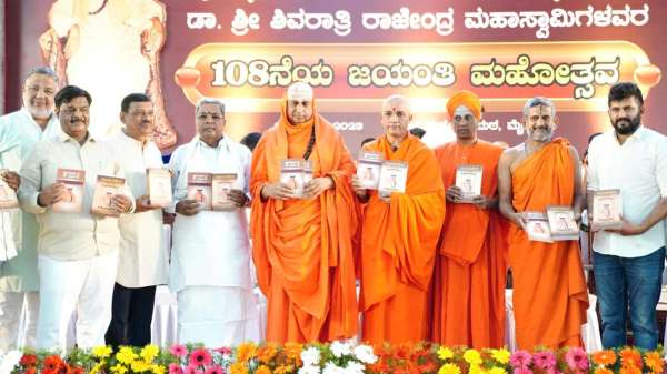 बेंगलूरु. मुख्यमंत्री सिद्धरामय्या ने मंगलवार को मैसूरु स्थित सुत्तूर मठ में डॉ. शिवरात्रि राजेंद्र स्वामी की 108वीं जयंती का उद्घाटन किया। इस मौके पर साहित्यकार डॉ. प्रदीप कुमार हेब्री द्वारा लिखित पुस्तक 'राजगुरुतिलका' का विमोचन भी किया गया। सुत्तूर मठ के संत शिवरात्रि देशीकेंद्र स्वामी, आदिचुनचनगिरि मठ के संत डॉ निर्मलानंदनाथ स्वामी, सिद्धगंगा मठ के संत सिद्धलिंग स्वामी और उडुपी पेजावर मठ के संत विश्वप्रसन्न तीर्थ सहित कई संत व राजनेता उपस्थित थे।