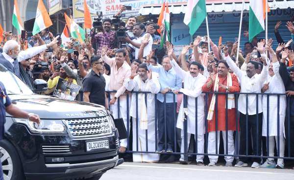 बेंगलूरु. प्रधानमंत्री नरेंद्र मोदी शनिवार को विदेश यात्रा से लौटने के बाद बेंगलूरु पहुंचे और इसरो मुख्यालय में चंद्रयान-3 की टीम से मुलाकात की। हवाईअड्डे के बाहर प्रधानमंत्री का जोरदार स्वागत हुआ। उनकी एक झलक पाने के लिए सुबह ही लोगों की भीड़ दिखाई दी। लोक कलाकारों ने ढोल बजाकर मोदी का स्वागत किया।