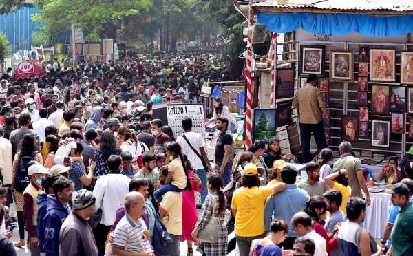 चित्रकला परिषद में रविवार को बेंगलूरु के वार्षिक चित्र मेले में चित्रों की खरीदारी करने उमड़े कलाप्रेमी।