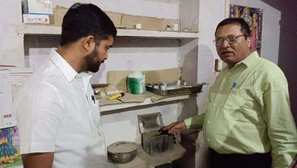 बांसवाड़ा. डॉ चौहान के क्लीनिक में डॉक्टर नहीं मिलने पर बेटे से जानकारी लेते सीएमएचओ।
