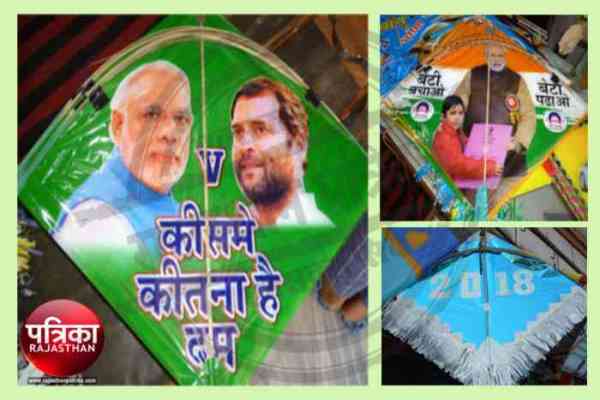 इतना ही नहीं बाजार में इस बार उपलब्ध पतंगें संदेशात्मक है। बेटी बचाओ और तिरंगे के रंगों से सजी पतंगों की भी खूब मांग है। पतंग विक्रेताओं ने बताया कि पतंगें गुजरात के सूरत से मंगवाई गईं हैं। इस कारण चुनावी रंग है।
