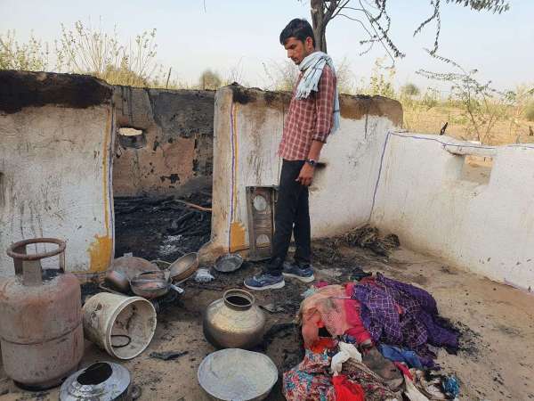 रहवासी ढाणी में आग, घरेलू सामान, झोंपा स्वाह