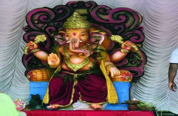 सेटर-६ ए मार्केट टे्पो स्टैंड में गणपति की प्रतिमा स्थापित की गई, जो पूरी तरह से गिट्टी से बनी है।