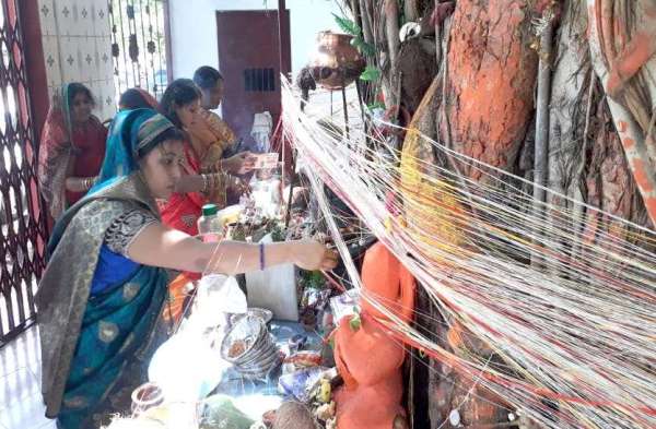 वटसावित्री व्रत पर दुल्हन की तरह सज-धज कर सुहागिनों ने मास्क लगाकर की पूजा कोरोना के डर को हटाकर वटवृक्ष तक पहुंची सुहागिनें पति की लंबी आयु के साथ मांगा जन्म-जन्म का साथ