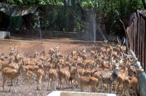 मैत्रीबाग में वनराज व हिरणों के झुंड पर पानी बौछार