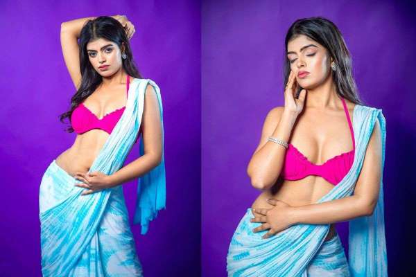 इस फोटो में एक्ट्रेस ने ब्लू कलर की साड़ी के साथ हॉट पिंक ब्लाउज पहन रखा है। इस फोटो में एक्ट्रेस अपने फिगर को फ्लॉन्ट करती हुई नजर आ रही हैं।