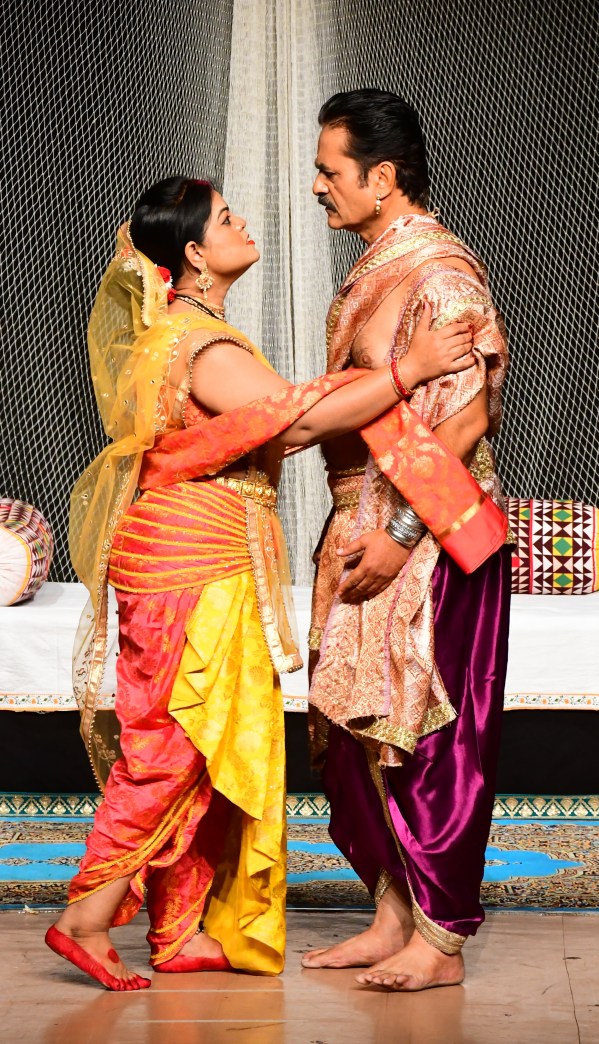 भोपाल @पत्रिका नाटक ययाति राजकुमारी शर्मिष्ठा देवयानी के साथ दासी के रूप में आई ययाति बनकर आई कथा से पति पत्नी के प्रेम दर्शाया गया है