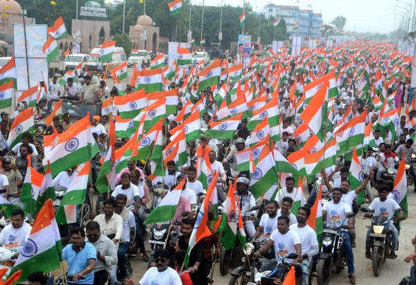 तिरंगा यात्रा तिरंगे ही तिरंगे वाहन पर लगे हुए