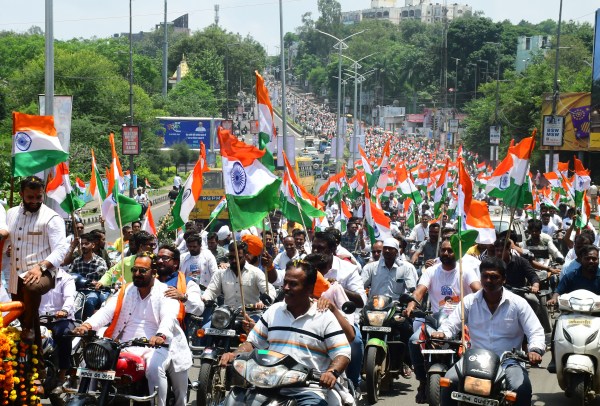 हजारों वाहनों के साथ निकली तिरंगा यात्रा कोलार से तिरंगे ही तिरंगे वाहन पर लगे हुए